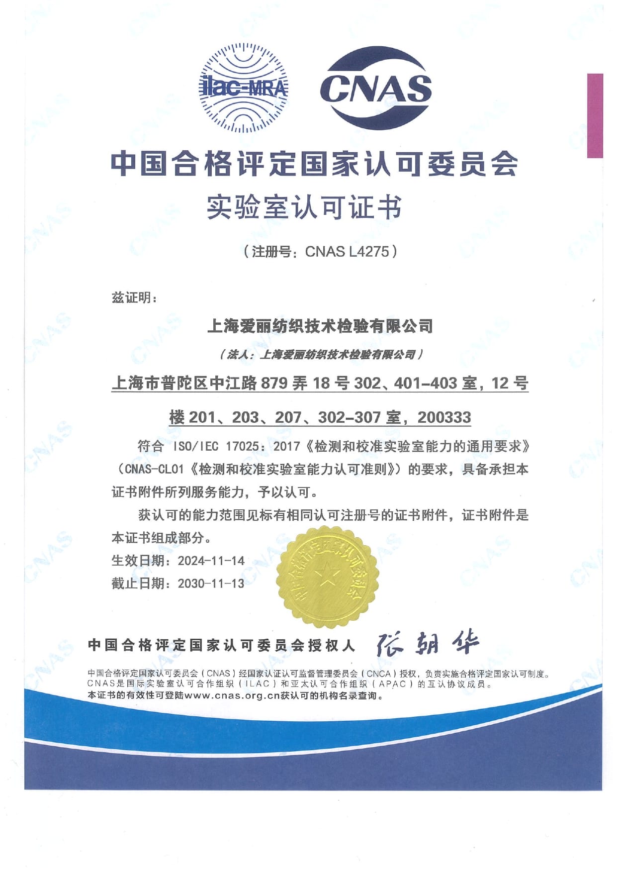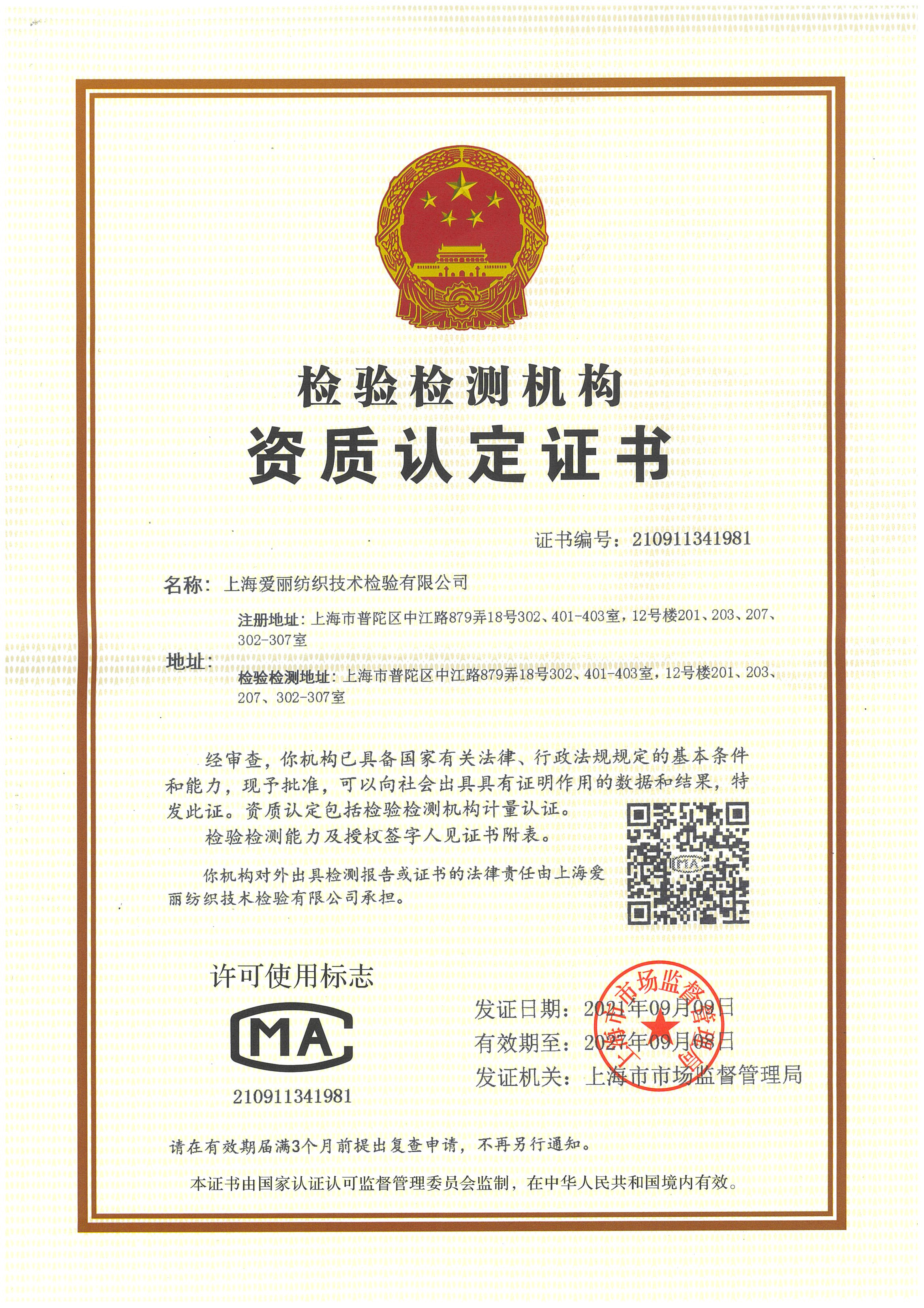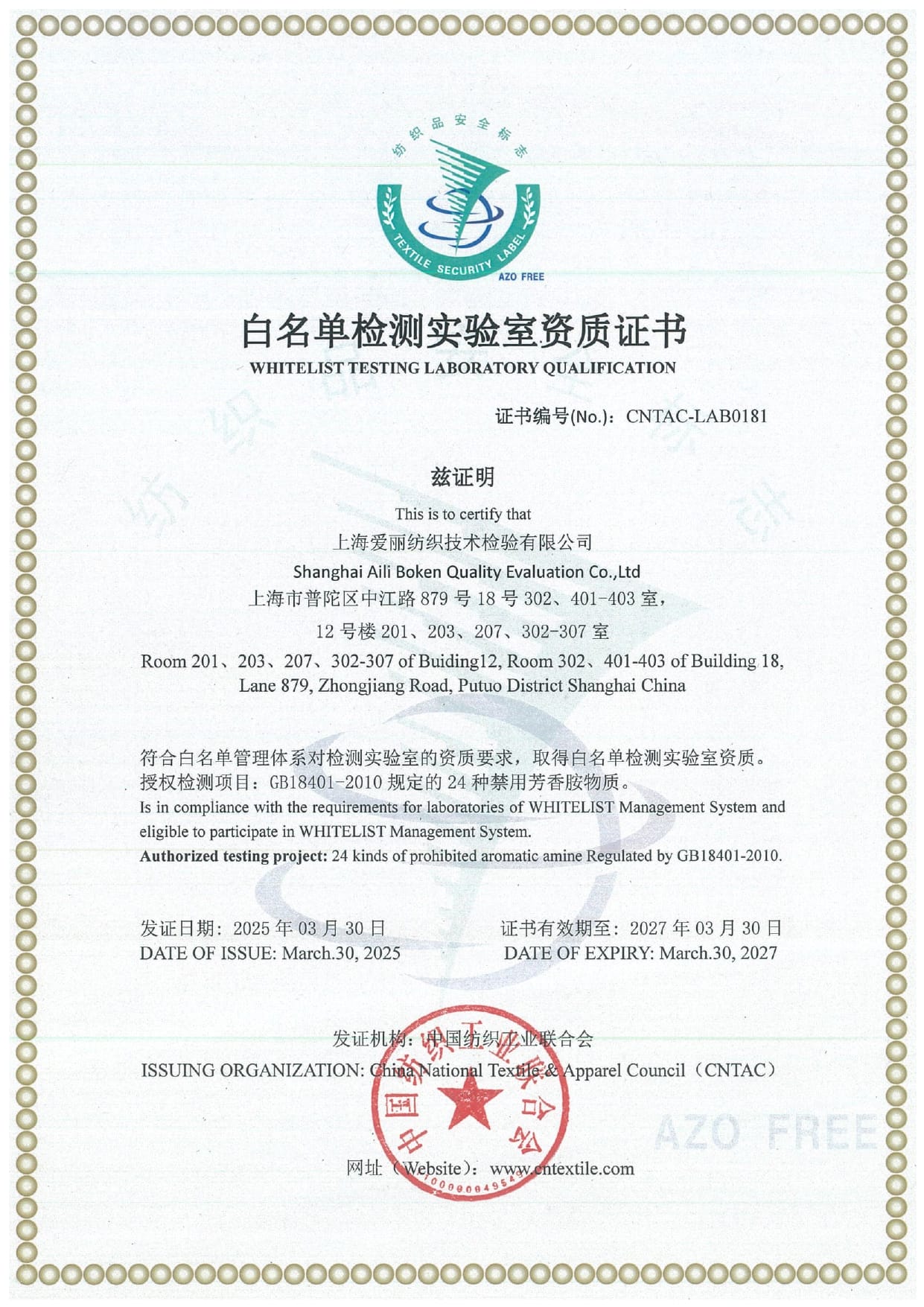 上海愛麗紡織技術(shù)検験有限公司は2013年3月に《ホワイトリスト資格》を取得致しました。