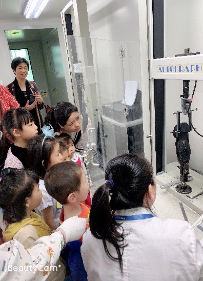 此次活動(dòng)安排了參觀、體驗(yàn)、趣味問答和歡樂午餐等項(xiàng)目。在參觀環(huán)節(jié)、小朋友們看到了徒手拉不開的鞋尖和鞋跟被測試儀器輕而易舉拉開、知道了如何區(qū)分羽毛和羽絨、看到了摩擦后被染色的白棉布等等。在體驗(yàn)環(huán)節(jié)、小朋友們認(rèn)真的觀察顯微鏡下棉、麻、毛纖維的不同之處。在趣味問答環(huán)節(jié)、幽默的日籍考官大關(guān)老師由于中文發(fā)音不太標(biāo)準(zhǔn),讀完問題后、小朋友們直接說聽不懂、哈哈、好尷尬啊(大關(guān)老師、中文能力有待提高喔)。不過、我們的小朋友們還是很棒的、答對(duì)了考官提出的所有問題,并得到了一大盒彩筆以示鼓勵(lì)。